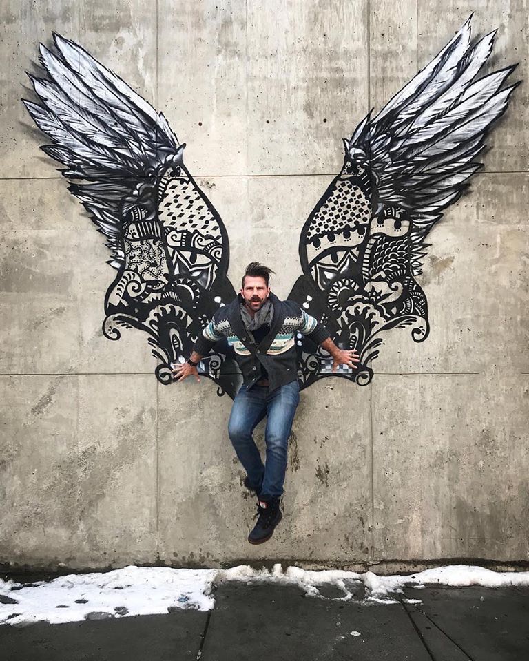“We knew it was going to put us on the map as artists,” Vyas recalled. It did. What they did not expect, however, was the heartfelt depth of the viewer interactions that ensued. Vyas recounted her favorite message they received from the outpouring of participation. “One was from a guy who was overweight and suicidal,” she said. “He took a picture against the wings and made a pact with himself to lose the weight within a year. A year later, he celebrated the loss of that weight by taking a shirtless photo of himself against those wings and sharing that this pact saved his life.”