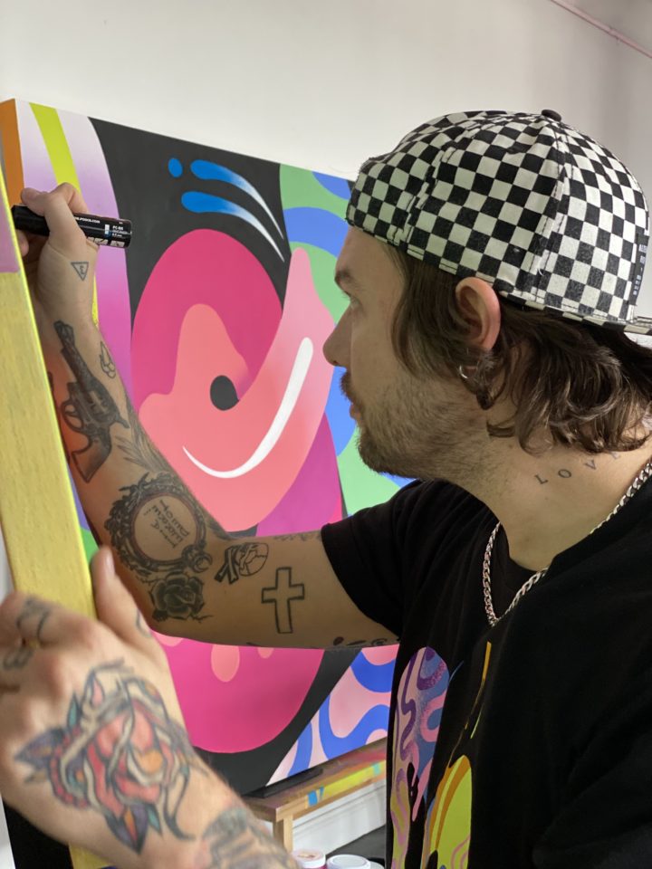 These tools work. The artist recalled a particularly meaningful moment in his career where one man from Chelsea reached out to say how he and his partner were huge fans of Naylor’s nearby mural, which then read ‘Live Life Colorfully.’ The fan wrote that this mural brought them so much joy, but his partner had recently been diagnosed and bedridden with cancer. Would the artist complete a commission so they could cherish a bit of his sunshine from the comfort of their home?