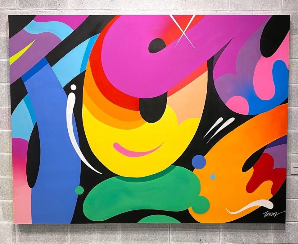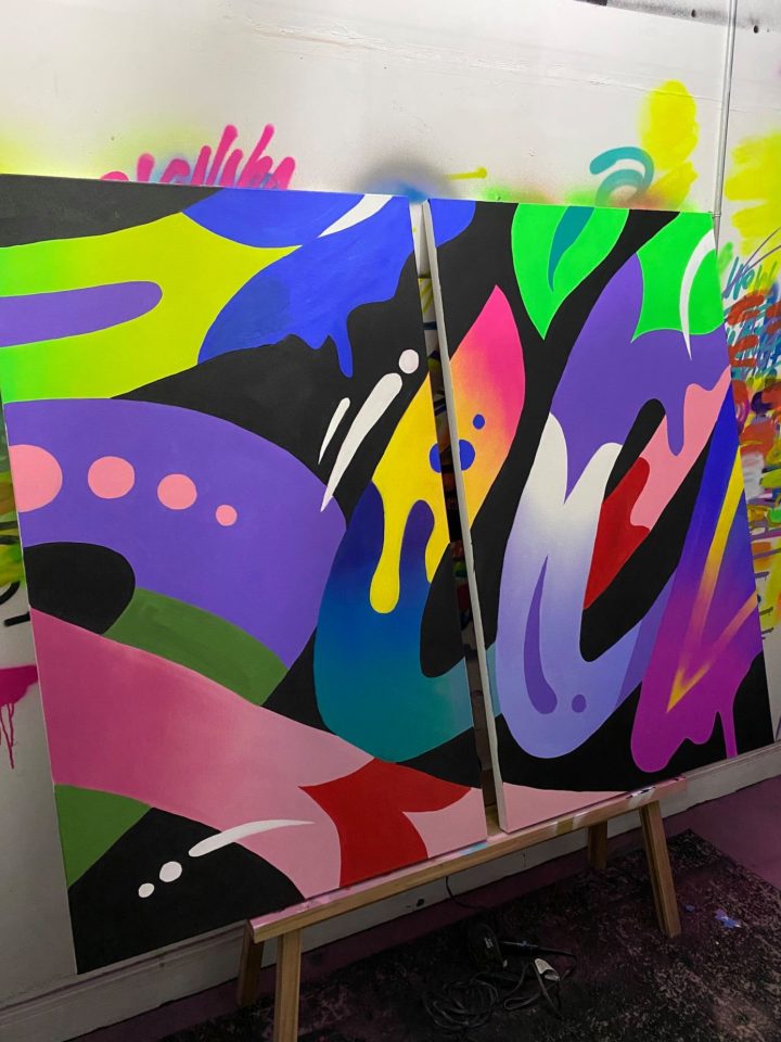 ‘Reading Between The Lines’ elaborates on Naylor’s electric typography by deconstructing his punchy catchphrases to the gestural level—snippets of letters that ultimately read abstract. Even with this innovation, the works espouse the artist’s signature joy. There’s subtleties to the components that resonate with audiences; sometimes it’s the message, but other times it’s the color or the puff pastry shapes. “I think the answer is all parts are equally important,” Naylor said. “It just depends on who the audience is.”